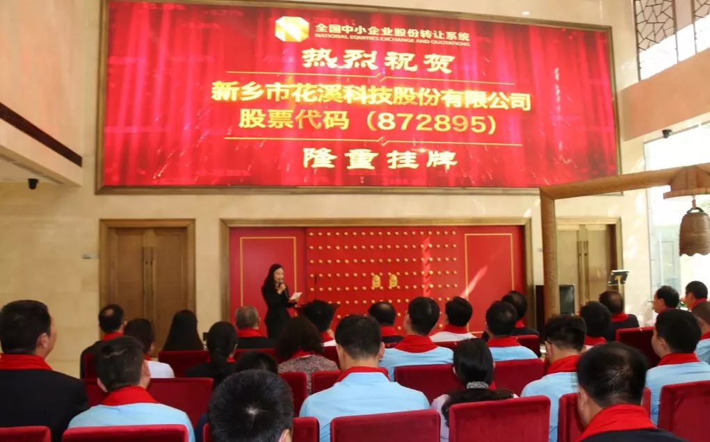 2018年8月31日上午9:30時,新鄉(xiāng)市花溪科技股份有限公司(簡稱:花溪科技,股票代碼:872895)新三板掛牌敲鐘儀式在北京全國中小企業(yè)股份轉(zhuǎn)讓系統(tǒng)成功舉行。中國農(nóng)機工業(yè)協(xié)會副秘書長寧學(xué)貴、獲嘉縣人民政府縣長劉軍偉、新鄉(xiāng)市金融局副局長張延明等特邀嘉賓及公司股東代表、員工代表、主辦券商、律師事務(wù)所、會計師事務(wù)所代表共同出席了掛牌儀式,共同見證花溪科技這一里程碑式的重要時刻。